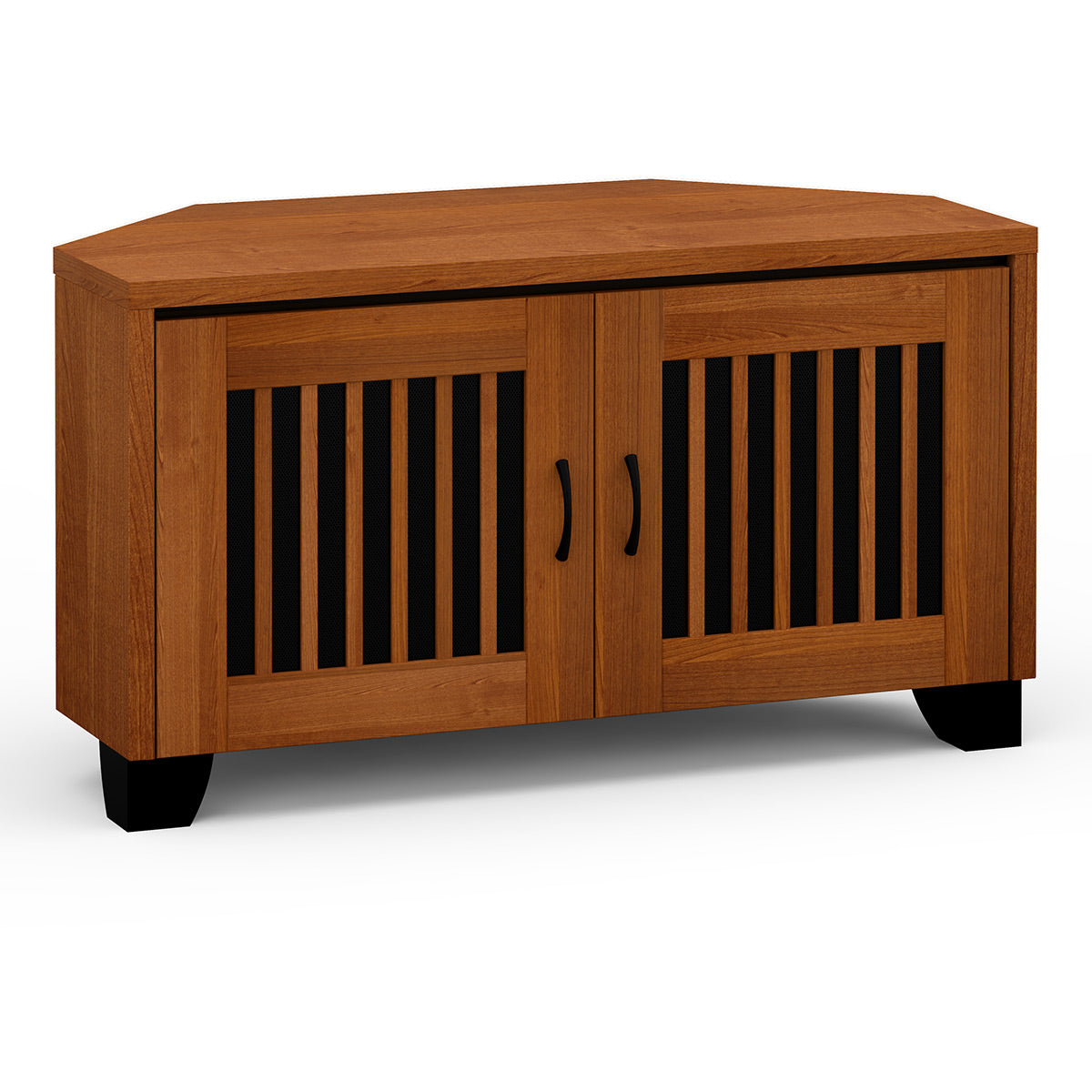 Salamander Chameleon Collection Sonoma 221 Twin Corner AV Cabinet (American Cherry Vertical Pattern with Perforated Black Steel Inserts)