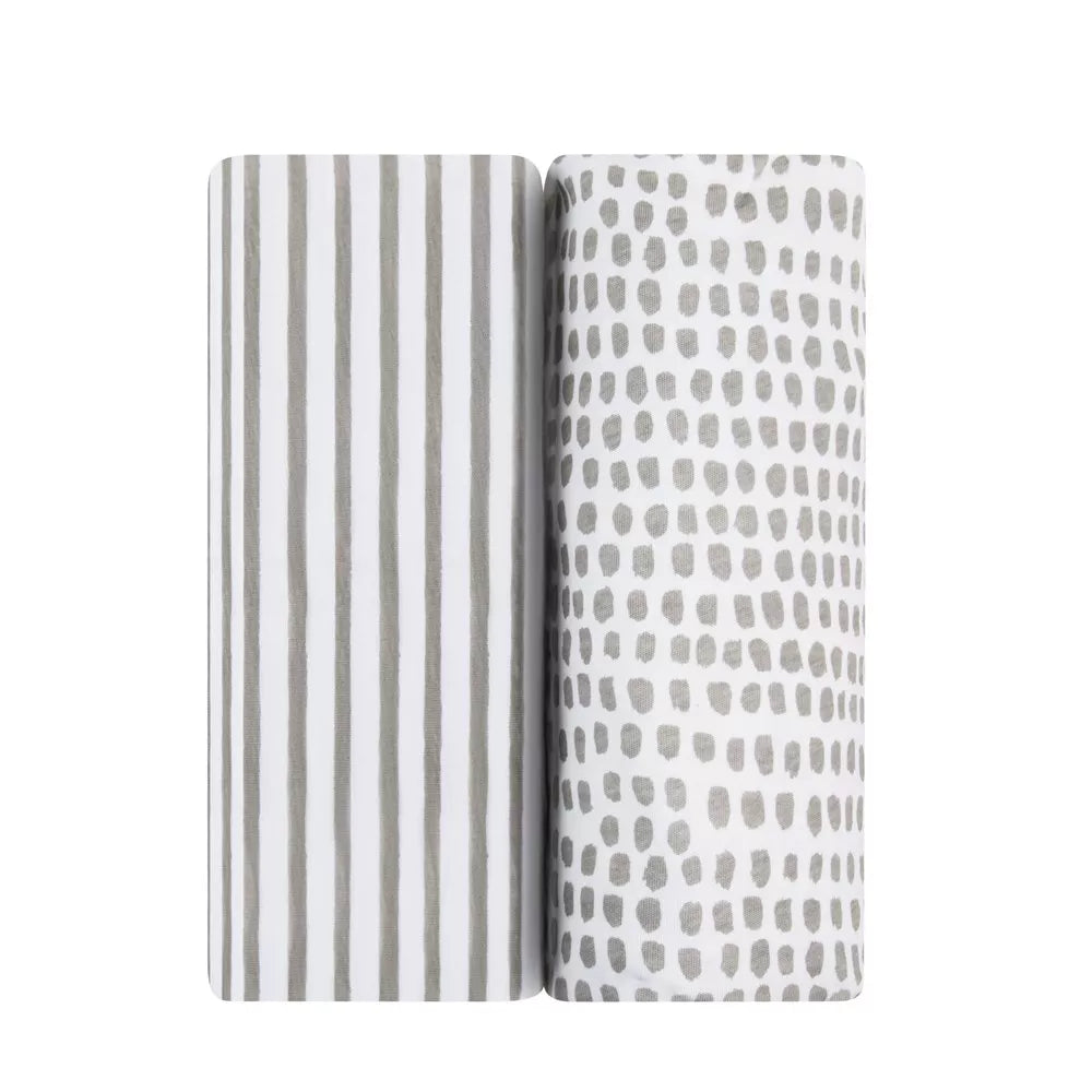 ELY`S & CO. WATERPROOF CHANGING PAD COVER SET | CRADLE SHEET 100% COTTON JERSEY KNIT 2 PACK- STRIPES AND SPLASH TAUPE