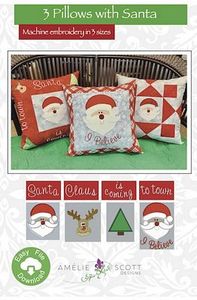 Amelie Scott Designs ASD262 3 Pillows with Santa Machine Embroidery