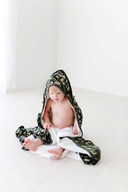 Posh Peanut Ruffled Hooded Towel | Cadet