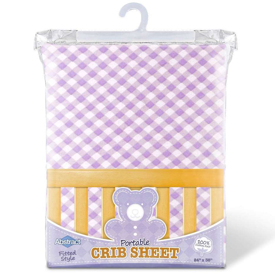 ABSTRACT FITTED SHEET CHECKED LAVENDER FOR PORTABLE CRIB – 24″ X 38″