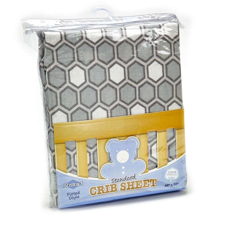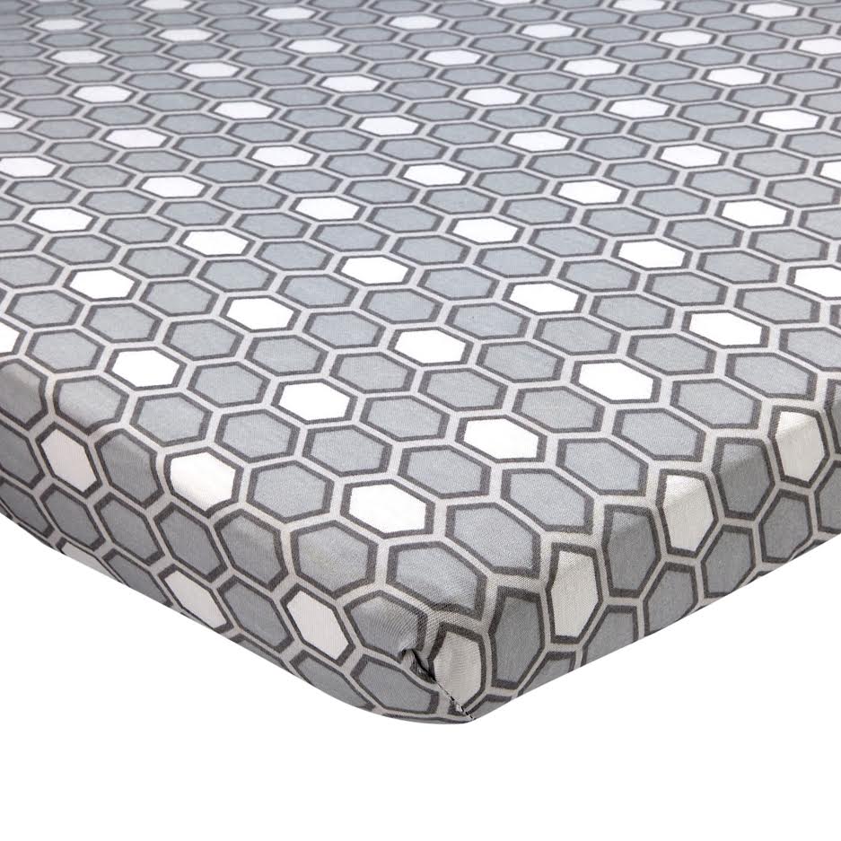 ABSTRACT FITTED SHEET HONEYCOMB GRAY FOR STANDARD CRIB – 28″ X 52″