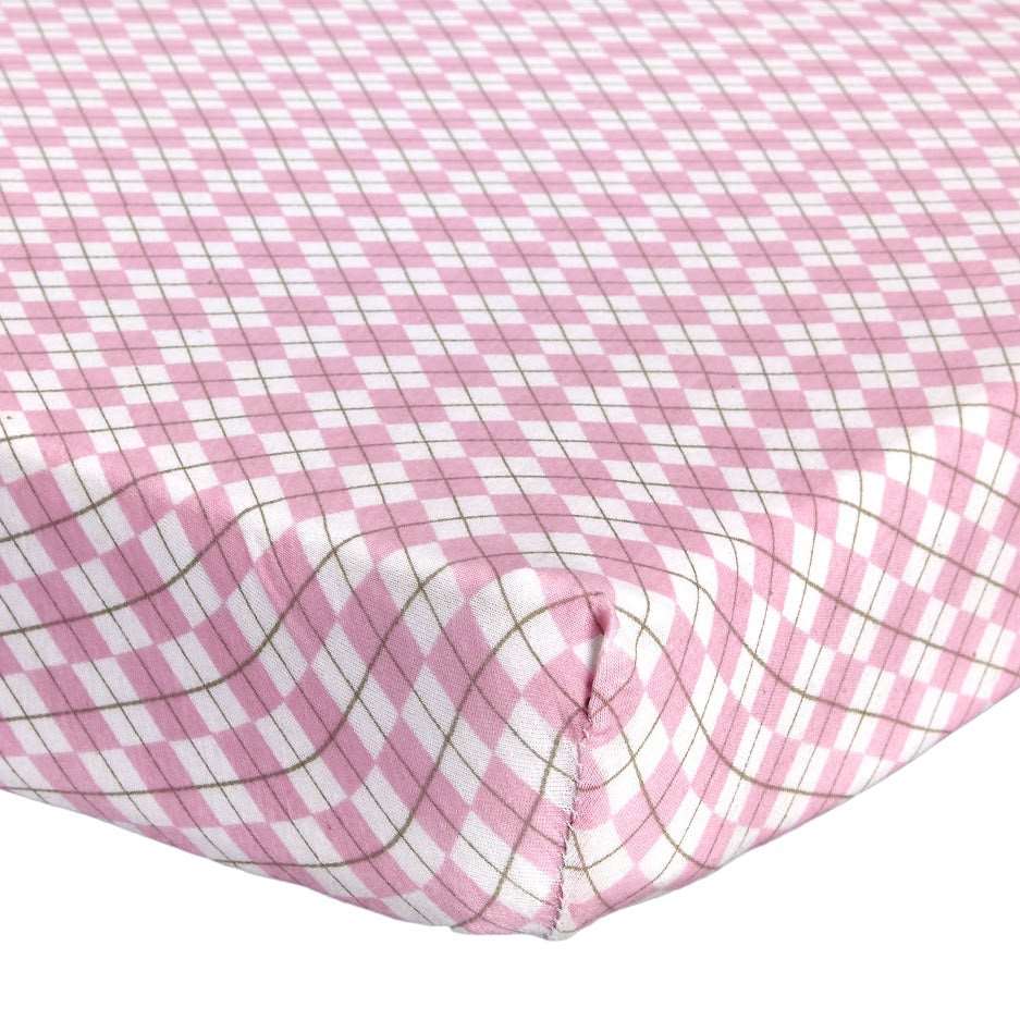 ABSTRACT FITTED SHEET PINK ARGYLE FOR REGULAR CRIB – 28″ X 52″