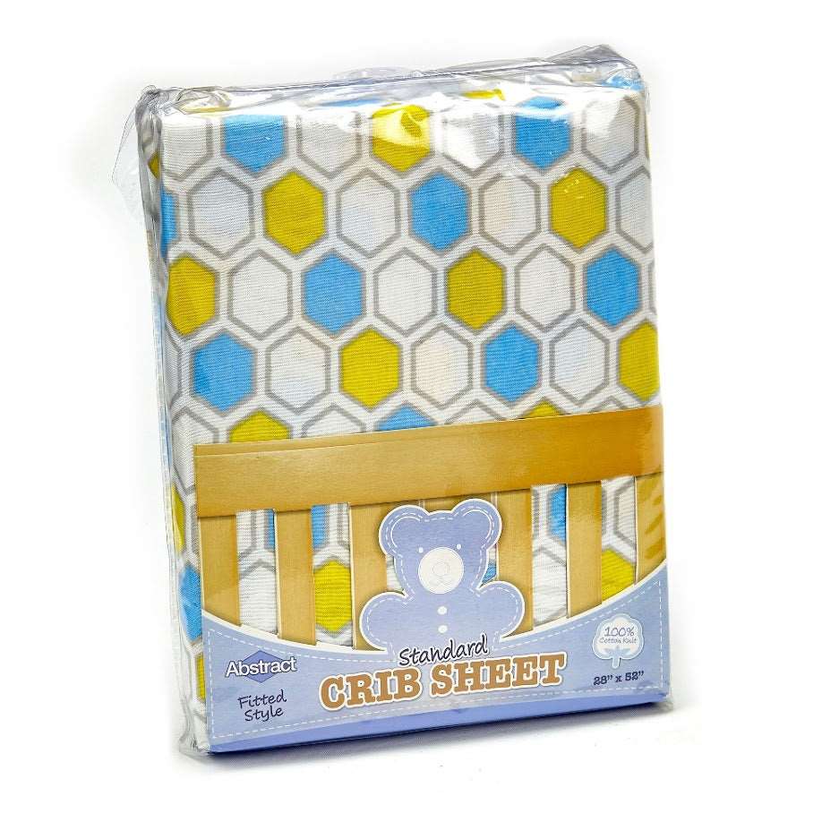 ABSTRACT FITTED SHEET HONEYCOMB YELLOW & BLUE STANDARD CRIB – 28″ X 52″