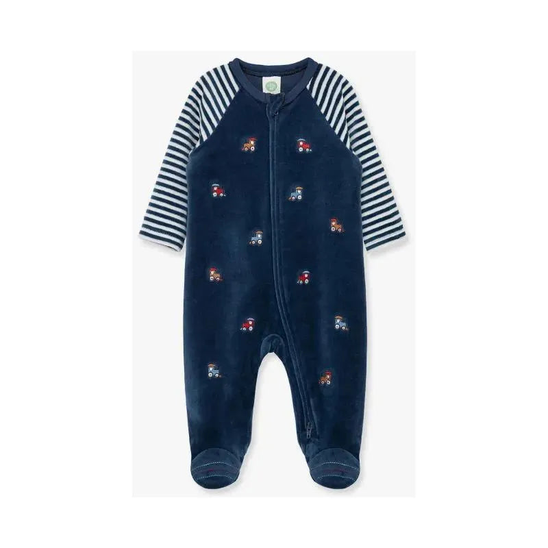 Little Me – Train Schiffli Footie, Blue