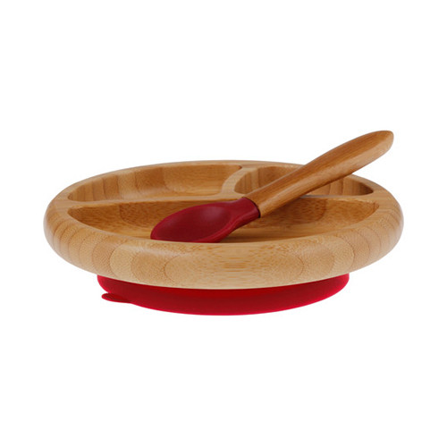 Avanchy Bamboo Stay Put Suction Divided Plate – Magenta