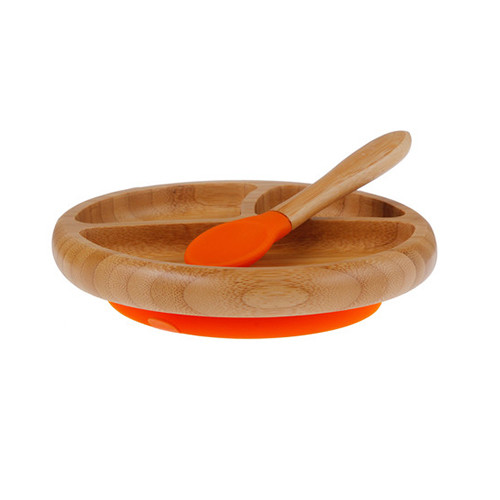 Avanchy Bamboo Stay Put Suction Divided Plate – Orange