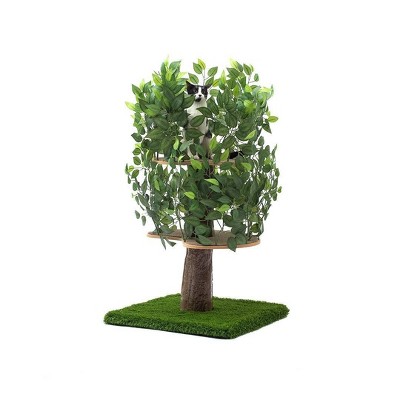 PawHut 2-Level Elevated Waterproof Outdoor Wooden Treehouse Cat Shelter With Balcony, Natural Wood