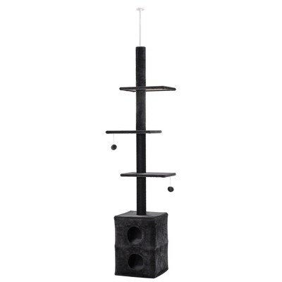 PawHut Cat Tree Floor to Ceiling Condo w/ Jute Scratching Post Dangling Ball Adjustable 86.5″ H -96.5″ H, gray