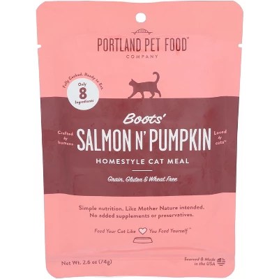 Portland Pet Food Company Boots’ Salmon N’ Pumpkin Homestyle Cat Meal – Case of 12 – 2.6 Oz