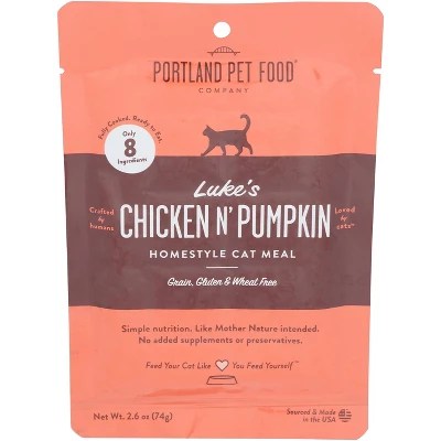 Portland Pet Food Company Luke’s Chicken N’ Pumpkin Homestyle Cat Meal – Case of 12 – 2.6 oz