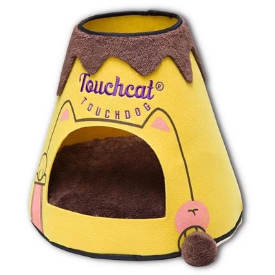 Touchcat Molten Lava Designer Triangular Cat Pet Kitty Bed House With Toy Yellow-Large