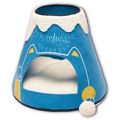 Touchcat Molten Lava Designer Triangular Cat Pet Kitty Bed House With Toy Blue-Large