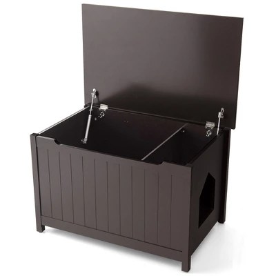 Tangkula Wooden Cat Litter Box Enclosure Flip-Top Hidden Washroom Bench w/ Side Entrance