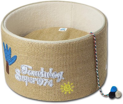 Touchcat ‘Claw-ver Nest’ Rounded Scratching Cat Bed w/ Teaser Toy Yellow-Medium