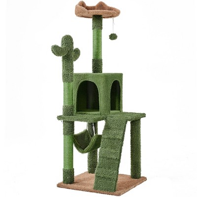 Yaheetech 53.5″ Height Cactus Cat Tree with Natural Sisal, Green/Brown