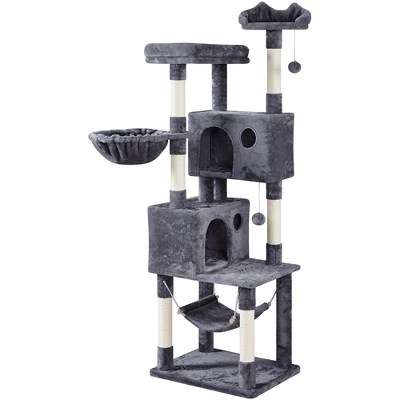 Yaheetech 73″H 4-level Plush Cat Tree Tower with Condos Platform – Dark Gray