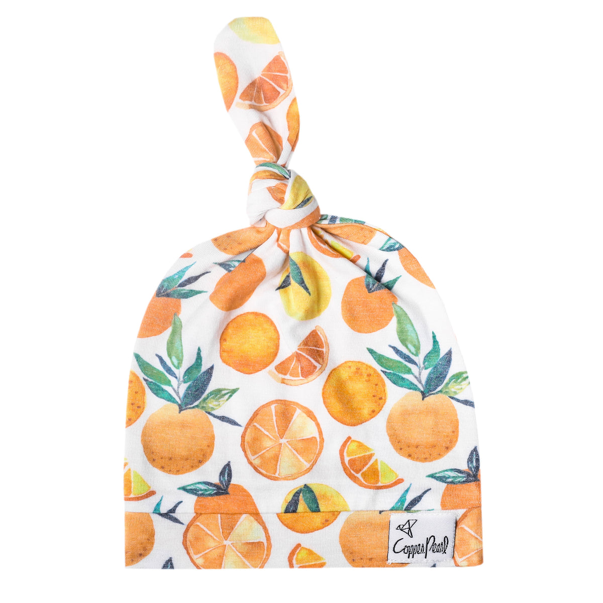 Copper Pearl Newborn Top Knot Hat – Citrus