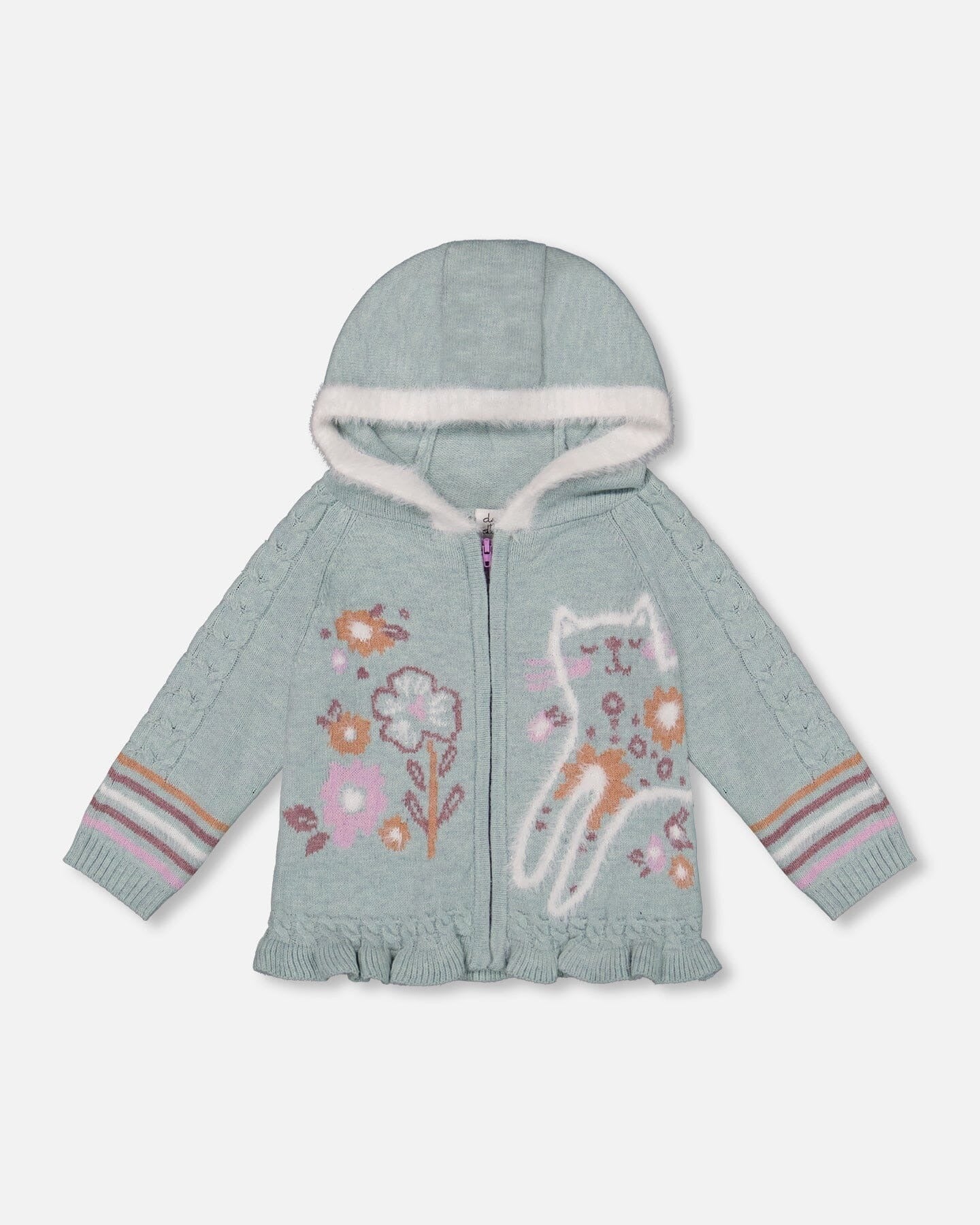 DEUX PAR DEUX JACQUARD HOODED KNIT CARDIGAN LIGHT TURQUOISE