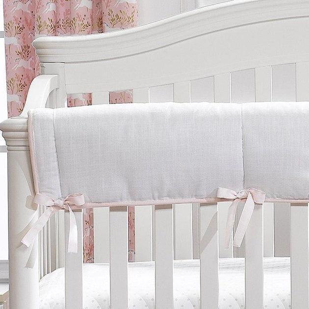Liz & Roo White Woven Crib Rail Cover (Blush Pink Trim)