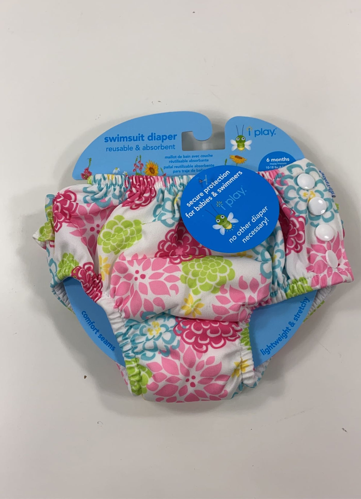 iPlay Reusable Swim Diaper, 6 Months, White Zinnia
