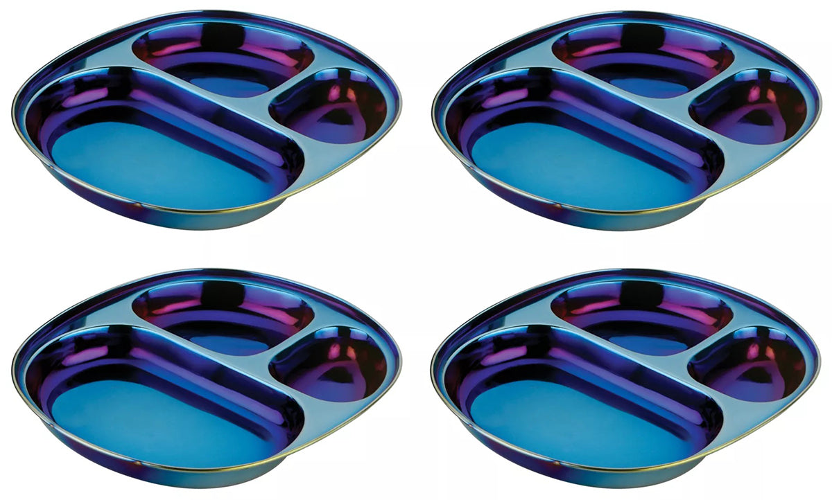 Ahimsa Stainless Steel Balanced Bites Plates (Set of 4) – Iridescent Blue