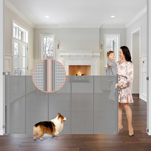 New Reinforced 42″ Extra Tall x 75″ Wide Retractable Baby Gates with Support Rods (Gray)