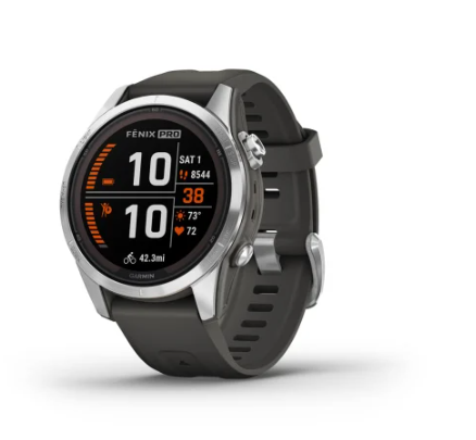 Garmin fenix 7S Pro Solar, Glass, Silver w/Graphite Band