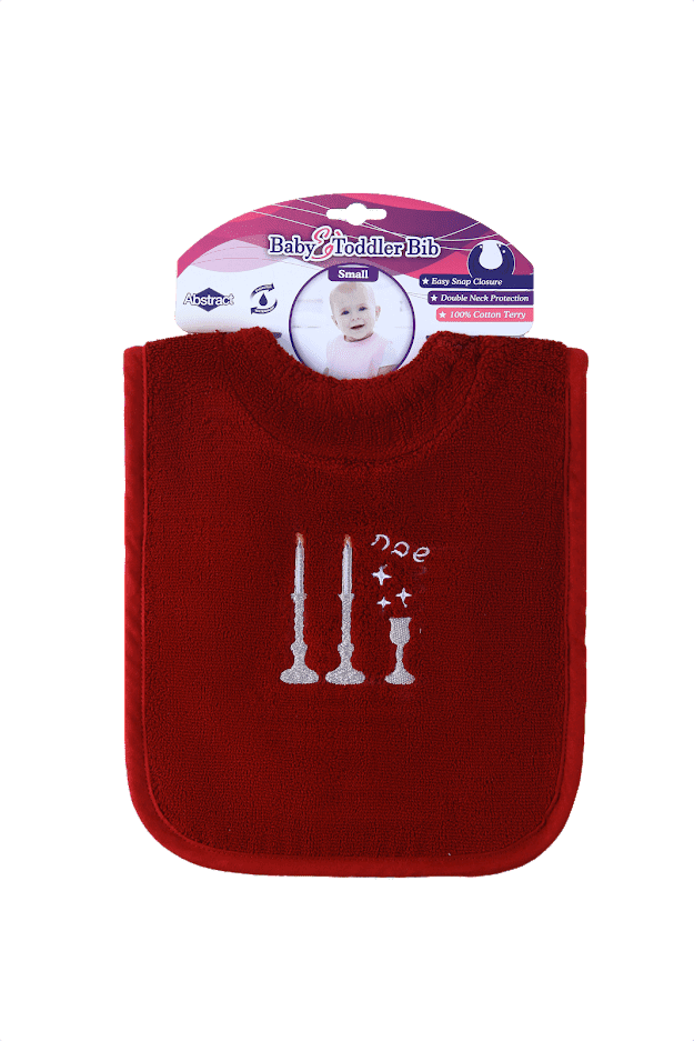 ABSTRACT WATERPROOF BIB WITH SNAPS, MAROON W/ SHABBOS CANDLES – SMALL