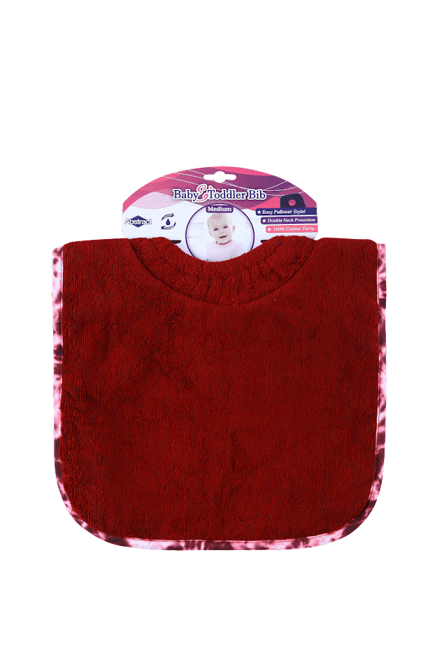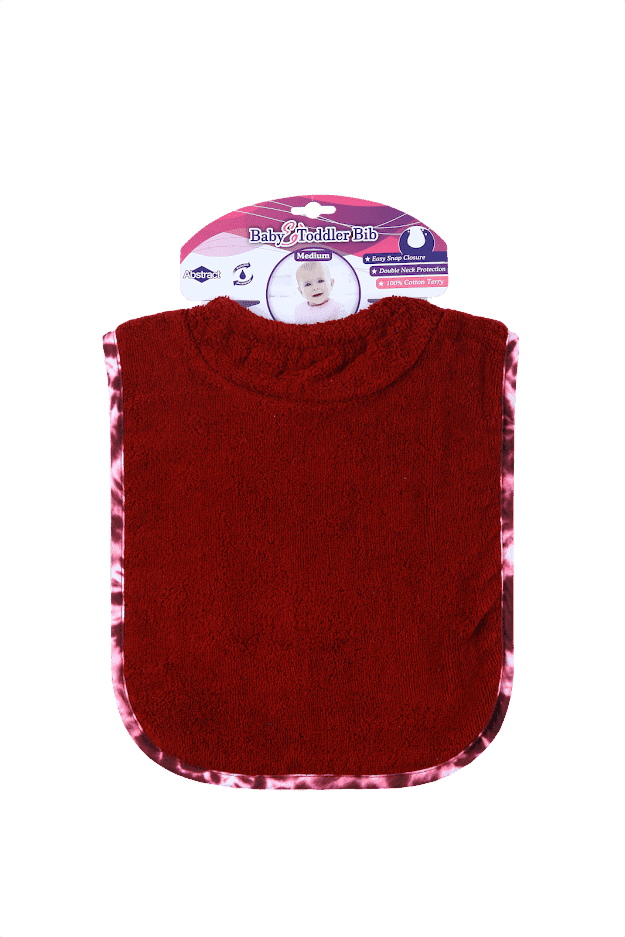 ABSTRACT WATERPROOF BIB WITH SNAPS, SOLID MAROON – SMALL