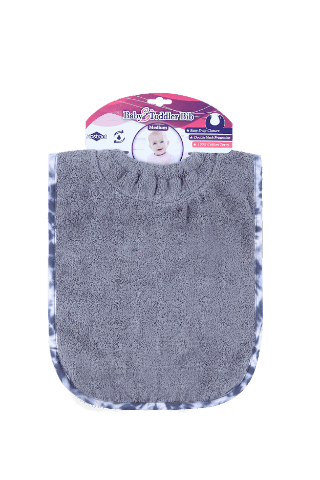 ABSTRACT WATERPROOF BIB WITH SNAPS, SOLID GREY – MEDIUM