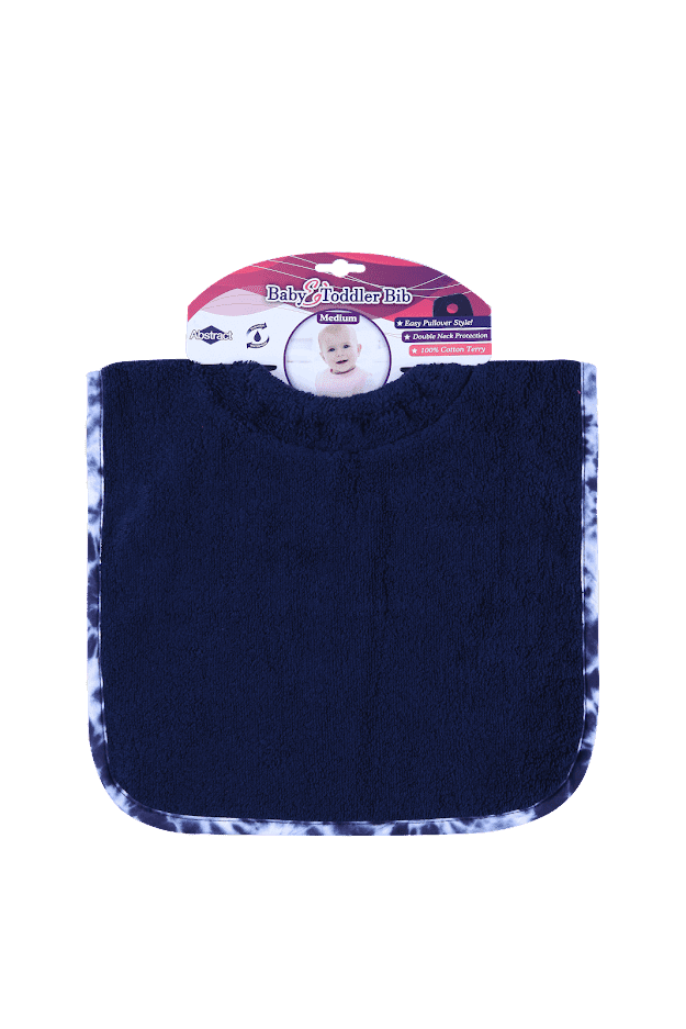 ABSTRACT WATERPROOF BIB WITH SNAPS, SOLID NAVY – MEDIUM