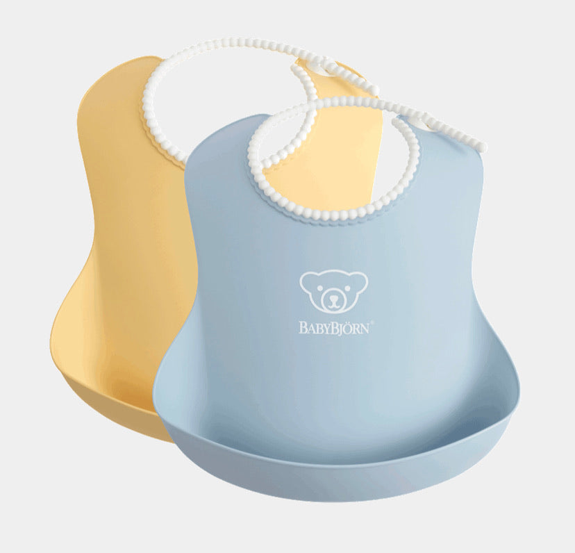 BabyBjorn Feeding Bib Set 2 Pack, Powder Yellow/Powder Blue