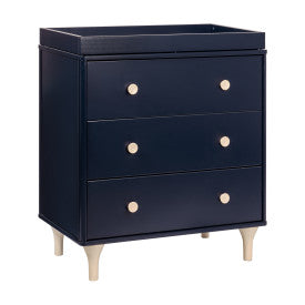 Babyletto Lolly 3-Drawer Dresser with Changing Tray – Navy / Washed Natural