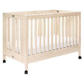 Babyletto Maki Full-Size Portable Folding Crib with Toddler Bed Conversion Kit – Washed Natural