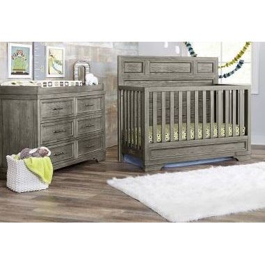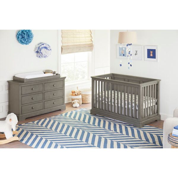 Westwood Foundry Flat Top Convertible Crib and Double Dresser – Brushed Pewter