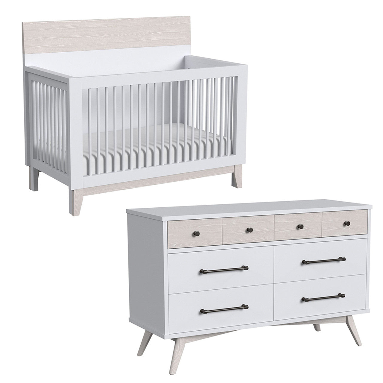 Westwood Rowan Convertible Crib and Double Dresser – Ash Linen