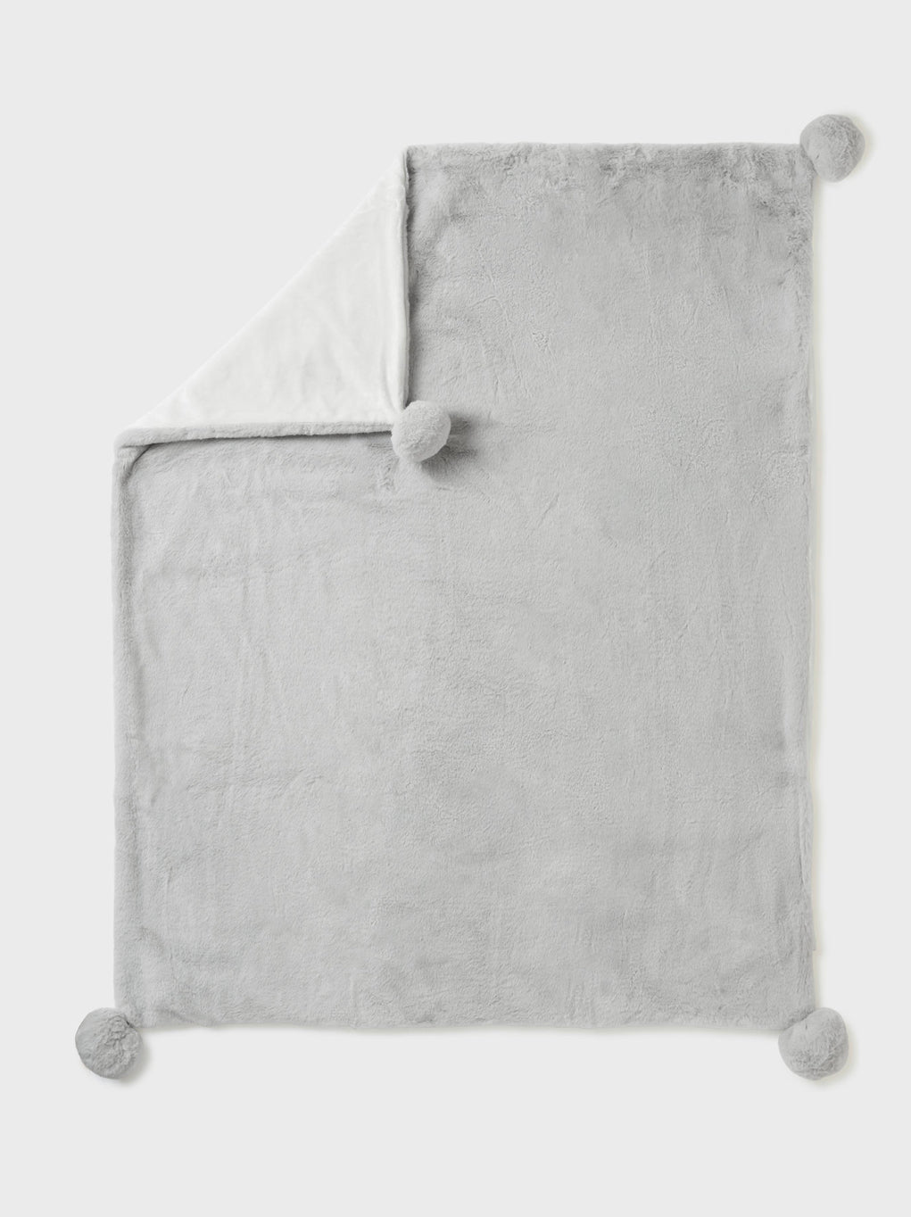 MAYORAL FUR BLANKET WITH POM POMS – FOG