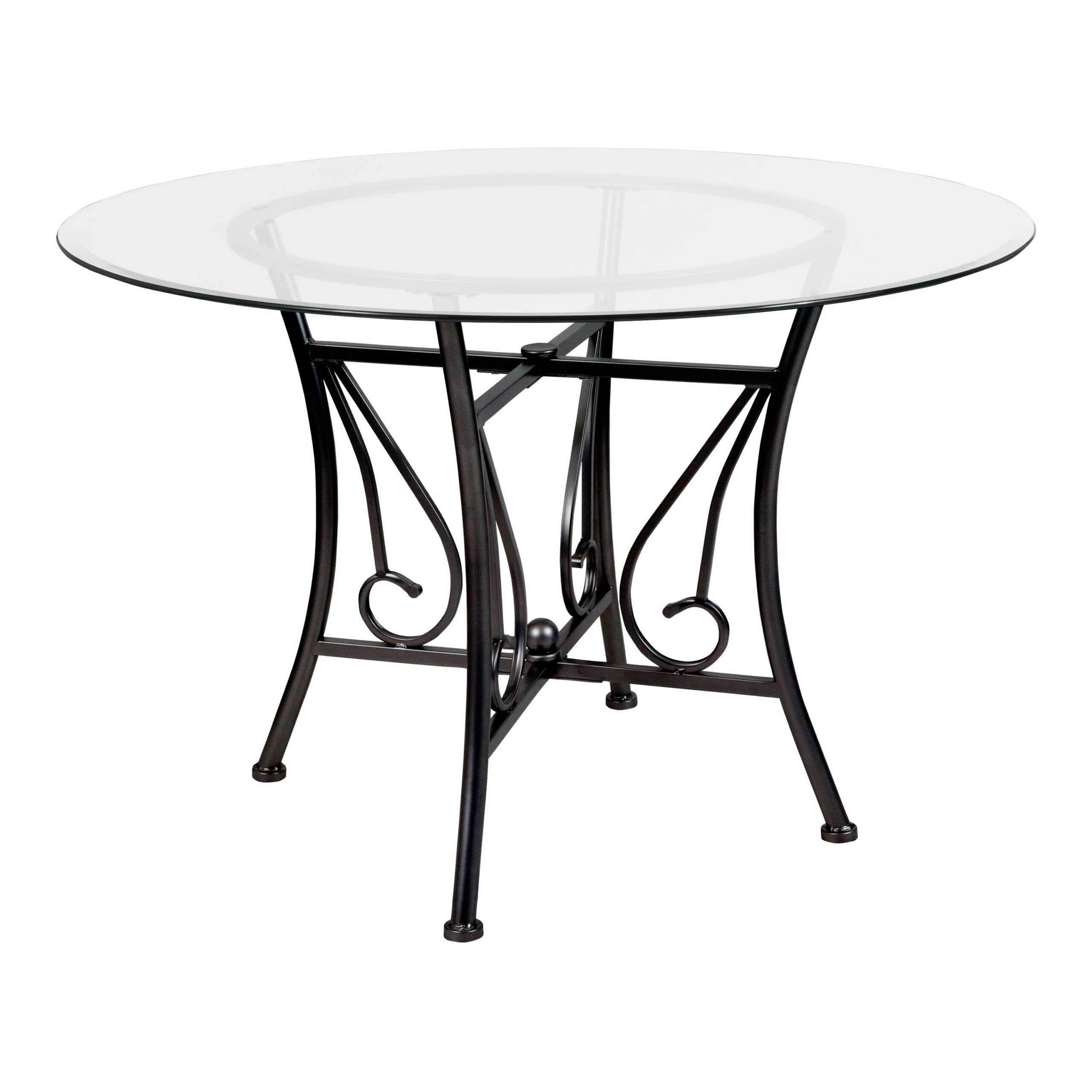 Princeton 45” Round Glass Dining Table with Curl Accent Matte Metal Frame