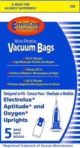 Electrolux Replacement Exr-1443 Paper Bag, Lux Aptitude/ Oxygen Uprt Mic Env 5Pk