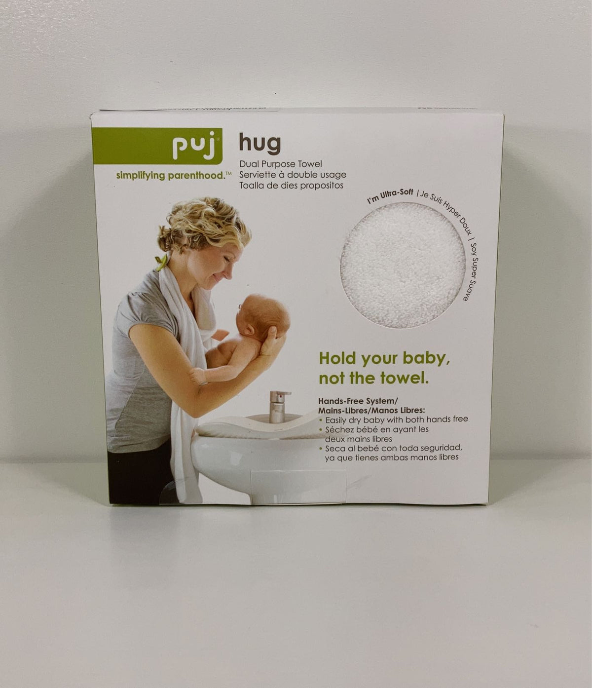 Puj Hug Hands-Free Hooded Infant Towel, White/Green
