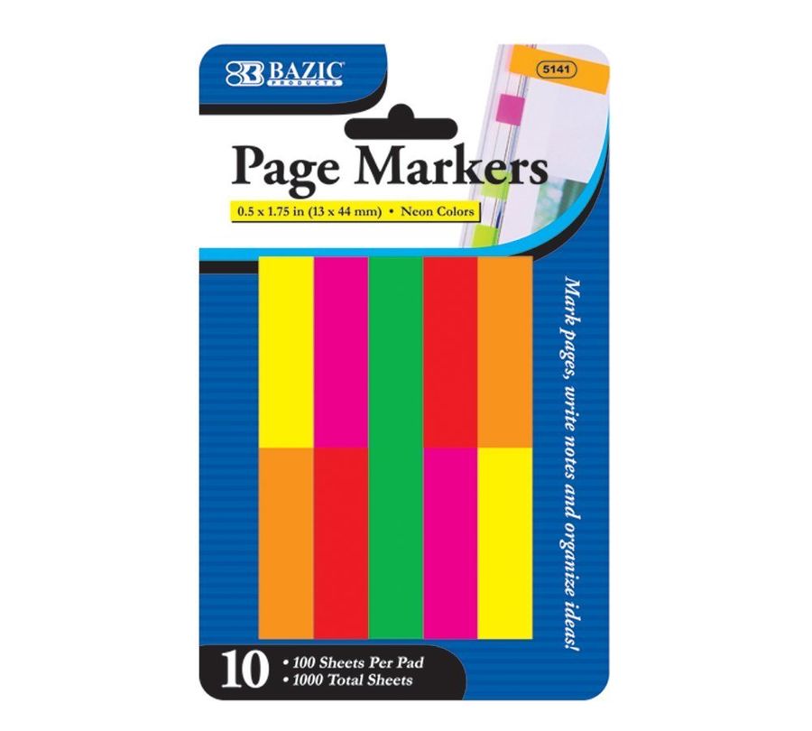 BAZIC Page Marker, 0.5 x 1.75 Inch, Neon (100 Count) 10 Per Pack