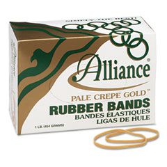 Alliance® Pale Crepe Gold Rubber Bands, Size 64, 3-1/2 x 1/4, 1lb Box ALL20645