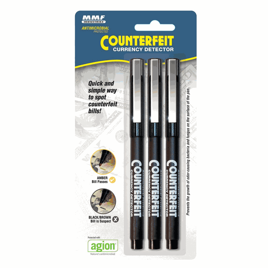 MMF Industries Counterfeit Detector Pen, 5.5 Inches, 3 Pens per Pack, Black Barrel (200045304)