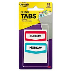 Post-it® Preprinted File Tabs, 1 3/4 x 1 1/2, Mon.-Sun., 28/Pack MMM686DAYS