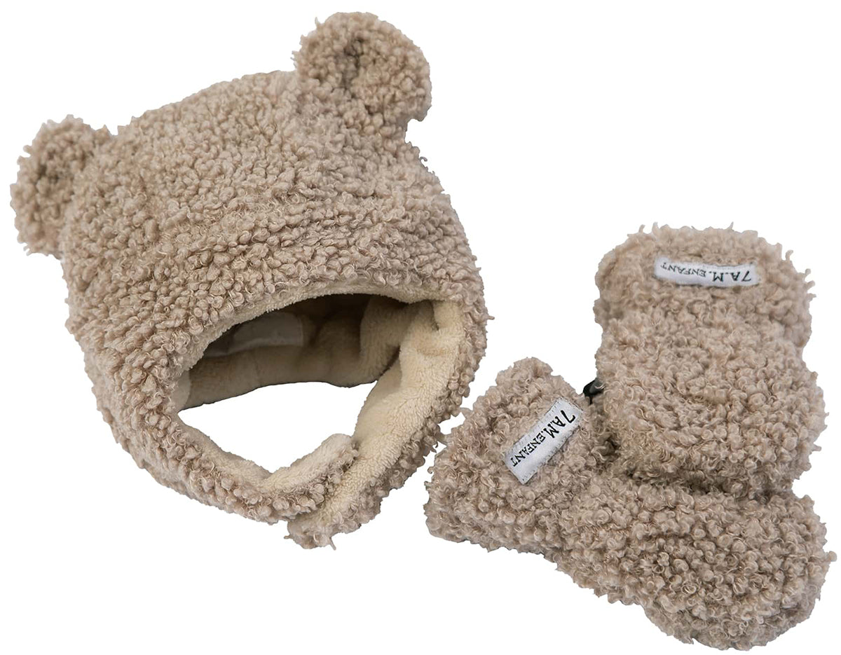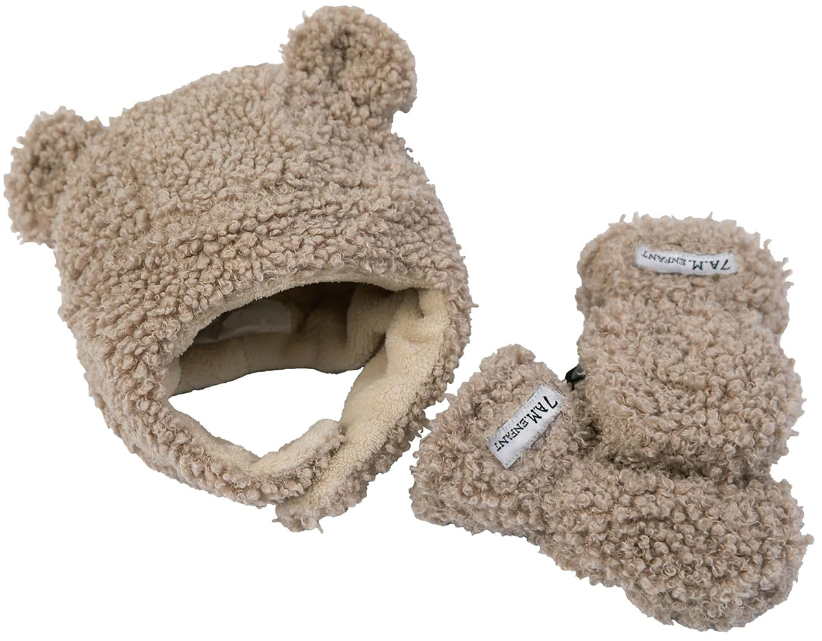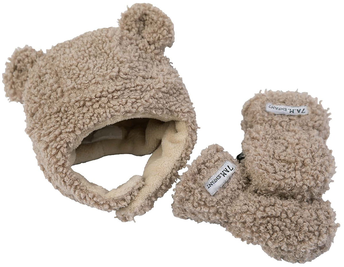 7 A.M. Enfant The Cub Mitten & Hat Set – Teddy – Oatmeal Teddy (12-24m)