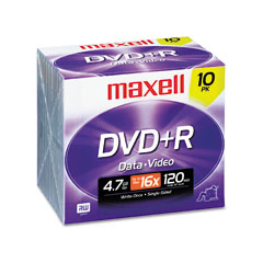 Maxell® DVD+R Discs, 4.7GB, 16x, w/Jewel Cases, Silver, 10/Pack MAX639005