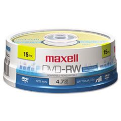 Maxell® DVD-RW Discs, 4.7GB, 2x, Spindle, Gold, 15/Pack MAX635117