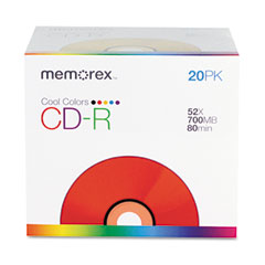 Memorex® CD-R Discs, 700MB/80min, 48x, Slim Jewel Cases, Assorted Colors, 20/Pack MEM04620