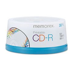 Memorex® CD-R Discs, 700MB/80min, 52x, Spindle, White, 30/Pack MEM04725